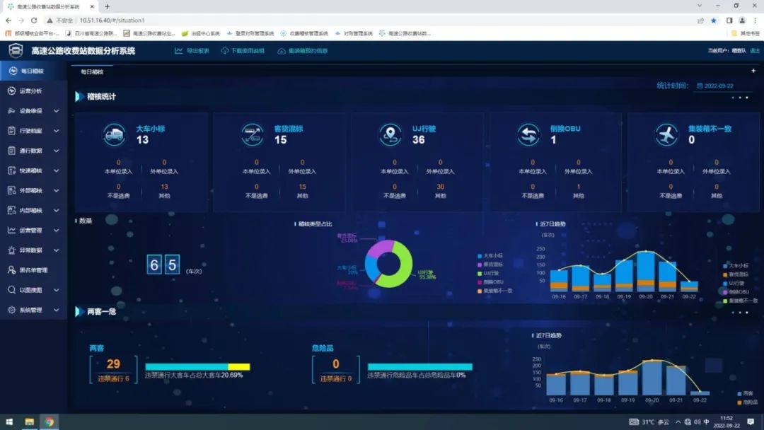 通過系統(tǒng)可了解路段通行的重點關(guān)注車輛通行信息,為道路安全通行管理提供數(shù)據(jù)支持;并對運行分析、每日稽核、流水記錄進(jìn)行數(shù)據(jù)統(tǒng)計,使路公司及時掌握高速全路段通行情況。