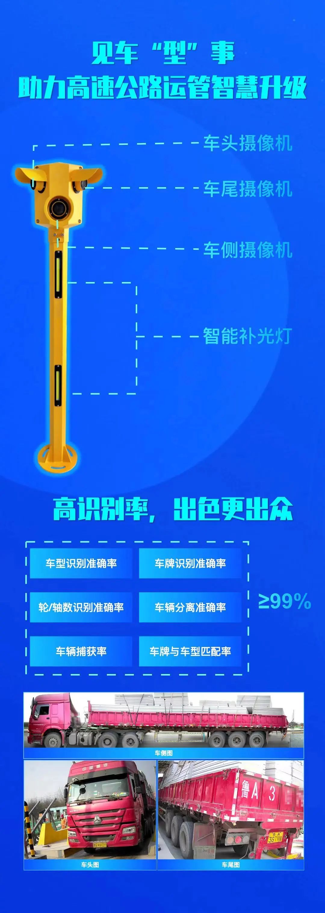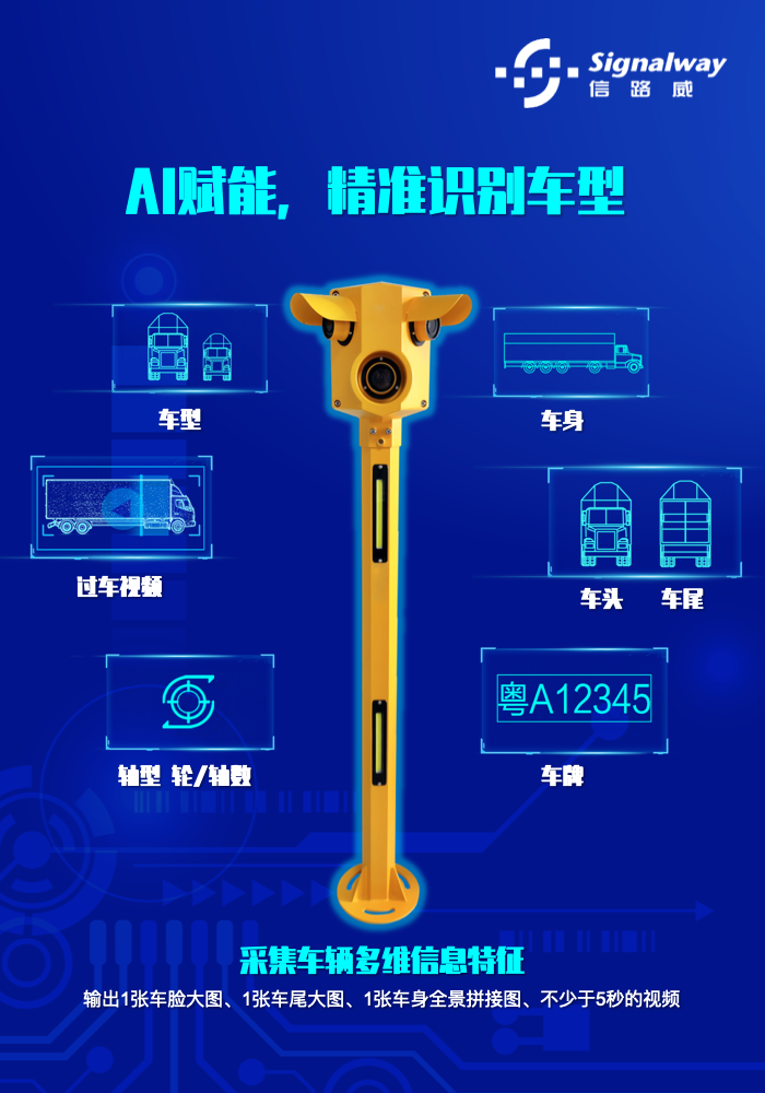 信路威視頻車型識別系統(tǒng)集圖像采集、圖像處理、圖像抓拍、高清過車錄像、車輛特征檢測、車牌識別、車型分類、輪軸數(shù)識別于一體,可應用于收費站入口自助發(fā)卡車道、出口自助繳費車道、入出口ETC專用車道、入出口ETC/MTC混合車道、拒超車道,實現(xiàn)通行車輛特征精準識別、套牌車查處、逃費治理等,在“取消省界收費站“和“一張網”運營管理和服務中發(fā)揮關鍵作用。