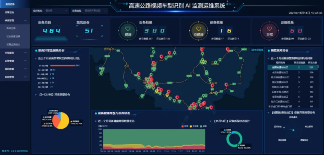 基于設(shè)備使用、管理中產(chǎn)生的海量數(shù)據(jù),信路威聯(lián)合黑龍江省交投高速公路運(yùn)營(yíng)管理有限公司研發(fā)了“高速公路視頻車型庫(kù)及大數(shù)據(jù)Al智能分析系統(tǒng)〞平臺(tái),實(shí)現(xiàn)了設(shè)備運(yùn)行狀態(tài)監(jiān)測(cè)感知、車型庫(kù)建立、大數(shù)據(jù)處理與分析功能,提高了設(shè)備及平合的使用效果與效率!