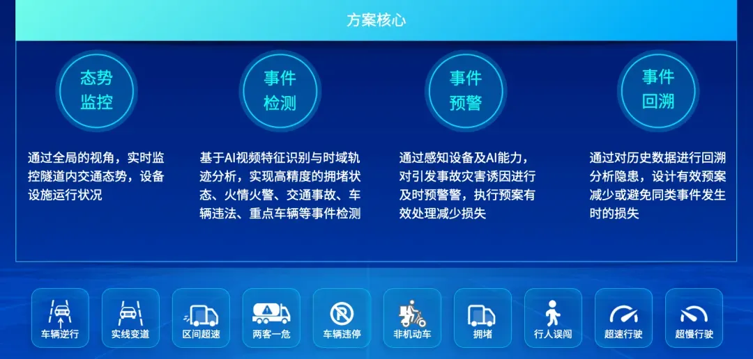 信路威“高速哨兵”通過過AI智能分析,識(shí)別行人/非機(jī)動(dòng)車車輛,檢測(cè)機(jī)動(dòng)車緩行、違停、倒車等違規(guī)行為,可應(yīng)用于高速公路隧道路段進(jìn)行安全預(yù)警,對(duì)違規(guī)行為給予預(yù)警和驅(qū)離,降低高速高速公路通行事故發(fā)生率和傷亡率,保障行車安全。