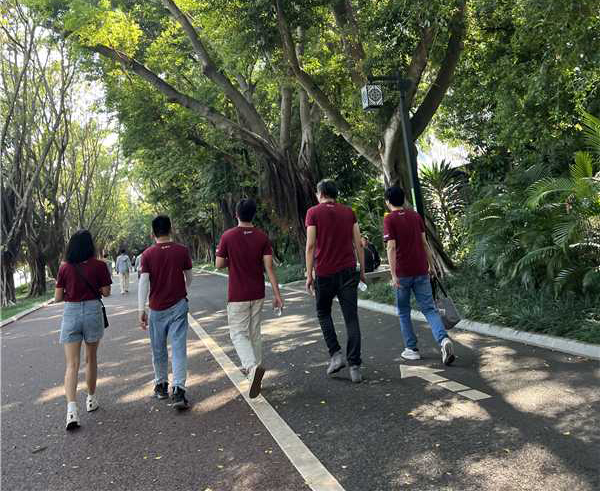 陽光灑下,員工們身著統(tǒng)一文化衫開啟徒步之旅。大家沿著風(fēng)景秀麗的步道并肩前行,途中相互鼓勁、分享趣事,矯健的步伐彰顯著信路威人昂揚(yáng)的斗志。