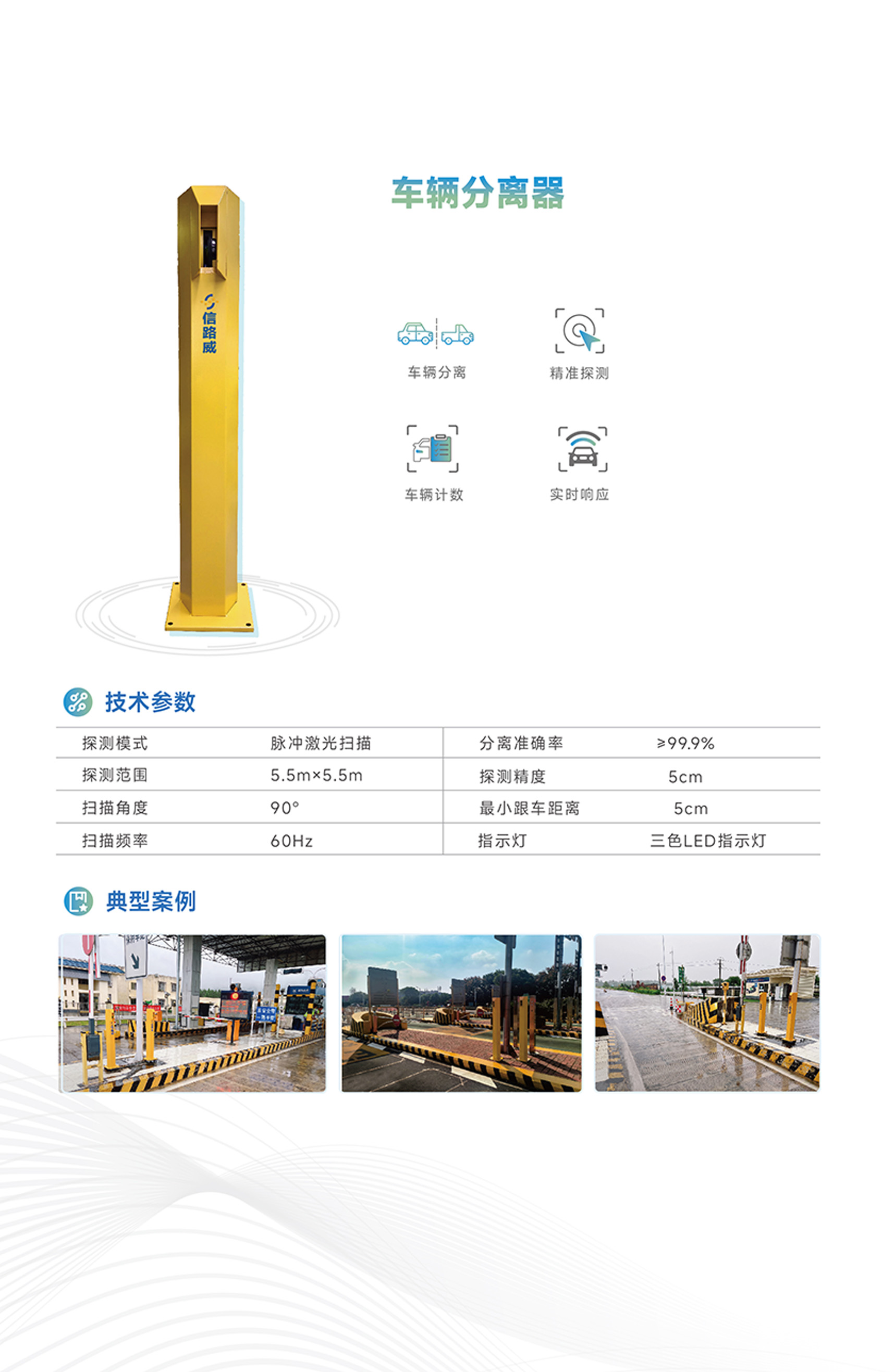 激光車(chē)輛分離器采用高頻紅外激光,集成激光發(fā)射裝置和激光接收裝置。設(shè)備基于TOF激光測(cè)距原理,通過(guò)向車(chē)道發(fā)射高頻紅外激光,實(shí)時(shí)檢測(cè)車(chē)輛通過(guò)時(shí)的距離變化,實(shí)現(xiàn)對(duì)車(chē)輛進(jìn)入時(shí)間和離開(kāi)時(shí)間的精準(zhǔn)測(cè)量,具有高精度、抗干擾、適應(yīng)性強(qiáng)等特點(diǎn),可廣泛應(yīng)用于車(chē)輛分離、車(chē)輛計(jì)數(shù)等場(chǎng)景。